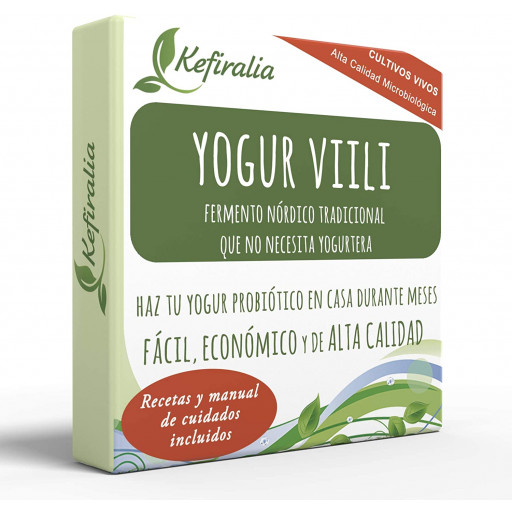 • Fermento que te permitirá obtener el yogur Viili originario de Escandinavia. Es el yogur más probiótico de todo nuestro catálogo por las diversidad de bacterias que contiene. Entre las cepas que se le atribuyen se encuentran Lactococcus lactis subsp. cremoris, Lactococcus lactis subsp. lactis biovar. diacetylactis, Leuconostoc mesenteroides subsp. cremoris